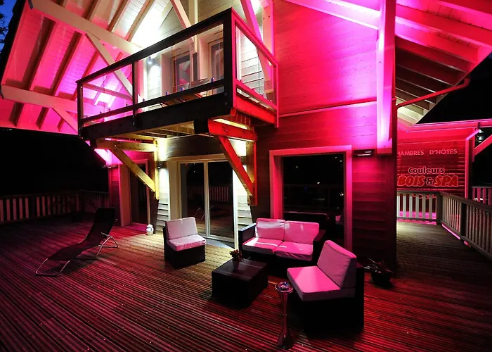 Surplombant la vallée, l'hotel Chambres d'hôtes Couleurs Bois&Spa Xonrupt-Longemer est à environ 4 km de la Cascade de la Mérelle à Xonrupt-Longemer. La résidence met à la disposition des hôtes un jacuzzi et un sauna et se trouve à environ 25 minutes à pied le lac de Longemer.